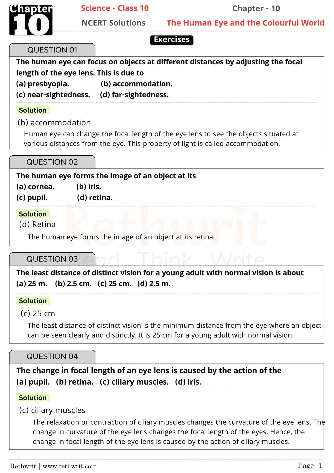Explore detailed NCERT solutions Class 10 Science for Chapter 10: The Human Eye & the Colourful World – clear explanations, solved exercises, PDFs & expert insights.