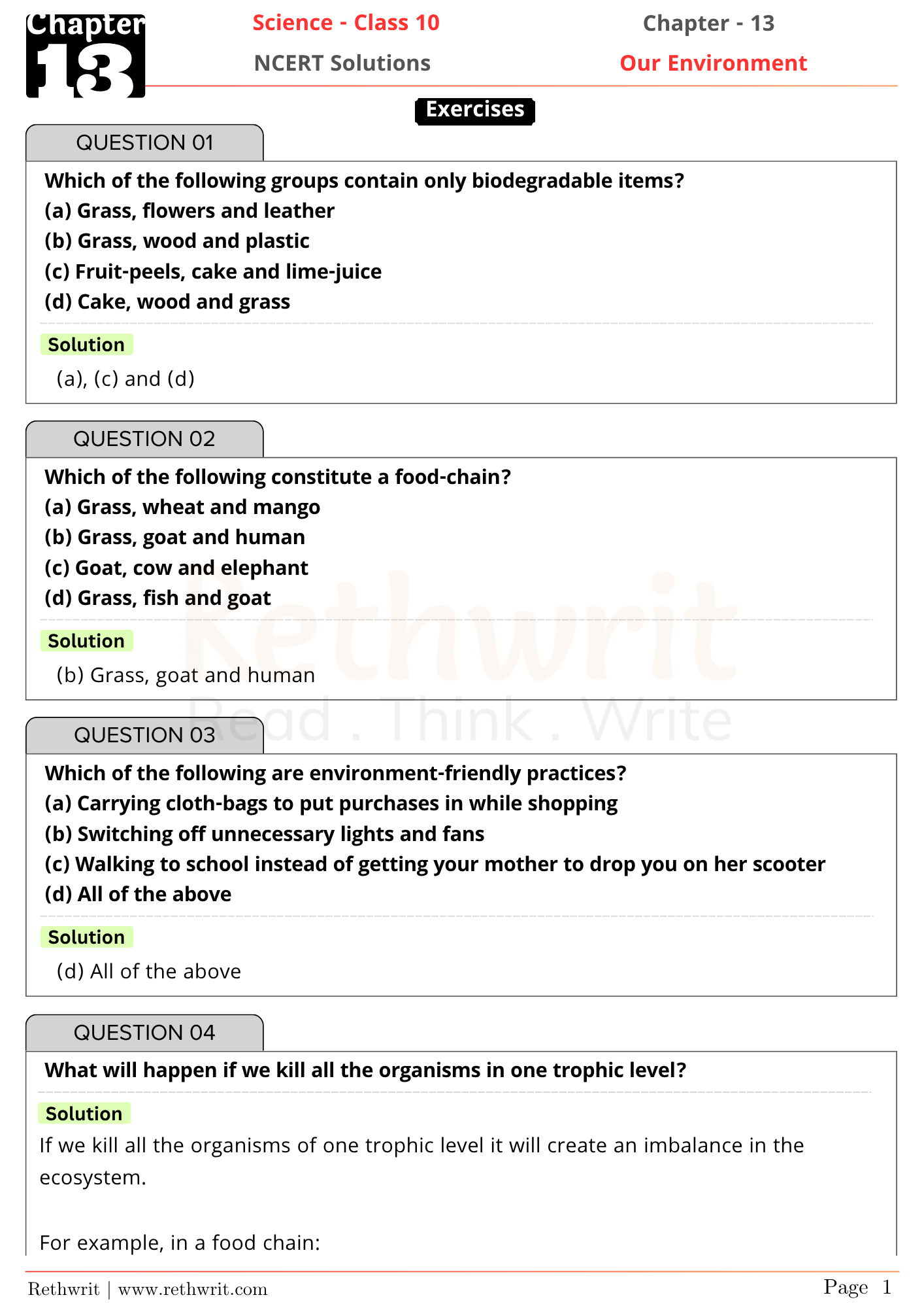 Get NCERT Solutions Our Environment Class 10 questions and answers ch 13 – step‑by‑step answers, concepts & Free PDF download.