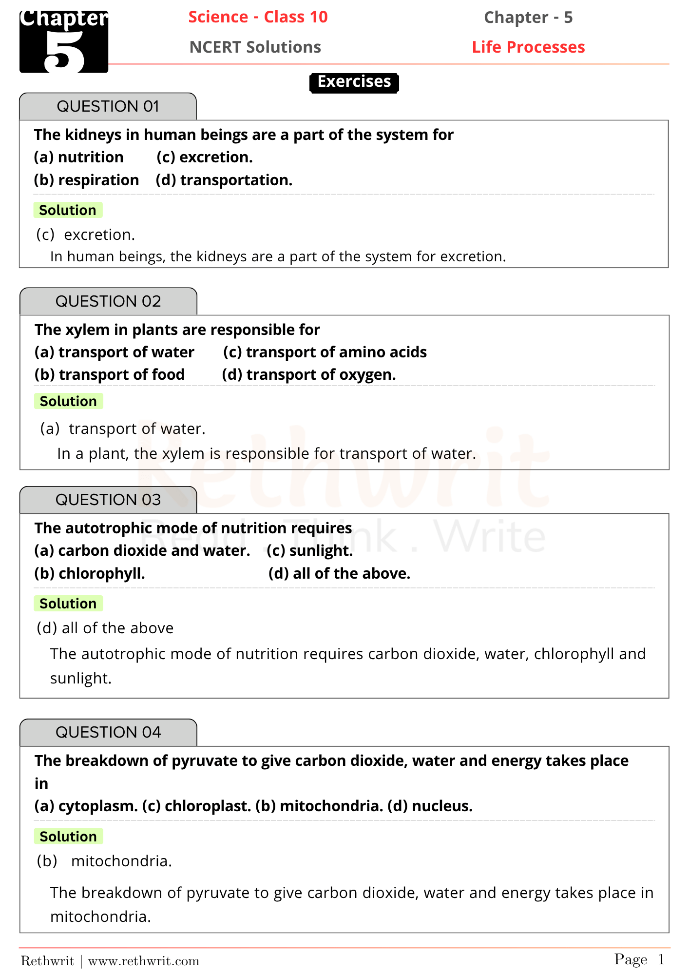 Access detailed NCERT Solutions for Chapter 5: Life Processes in Class 10 Science—clear explanations, step‑by‑step answers, PDF downloads & exam tips.